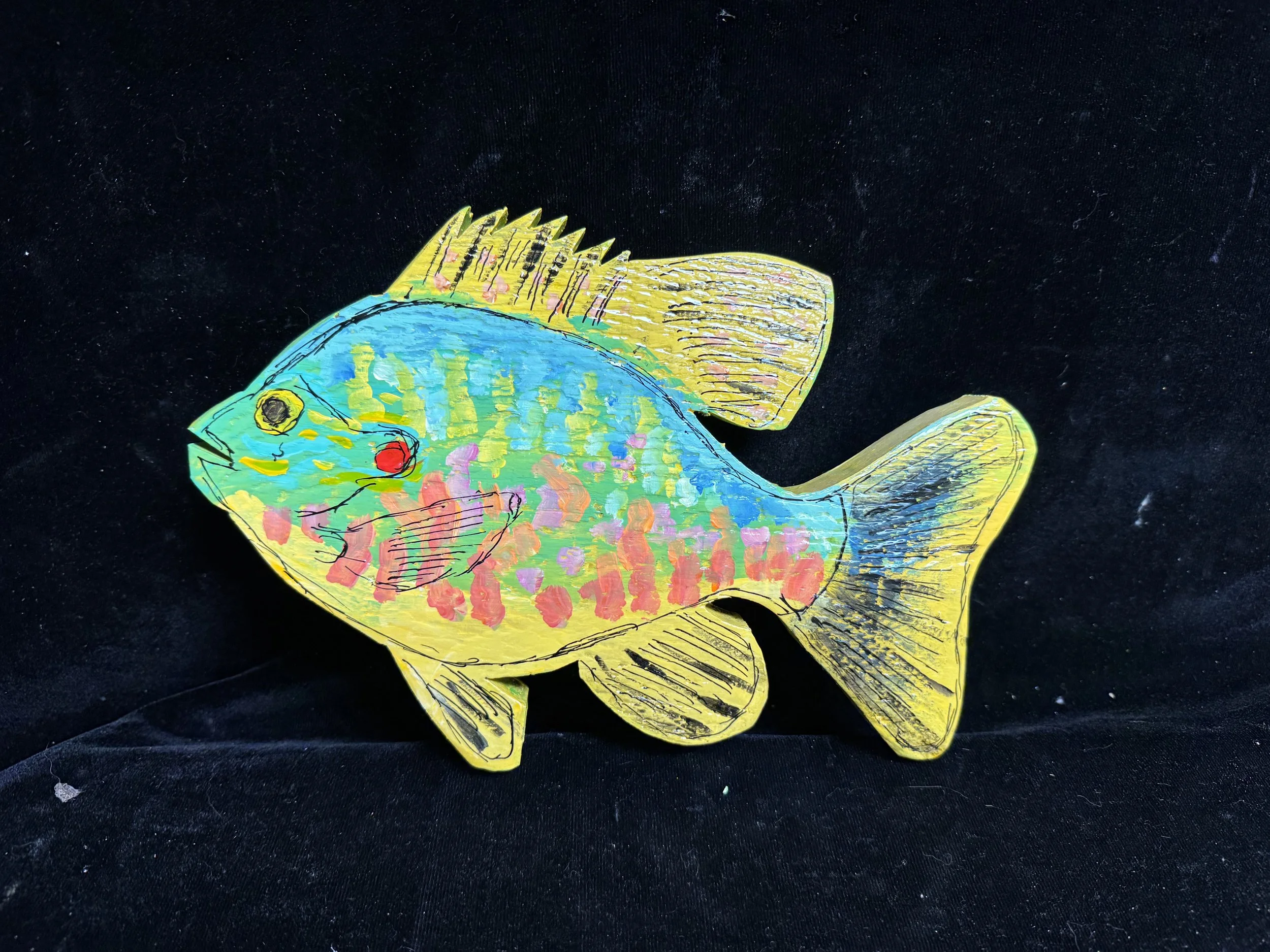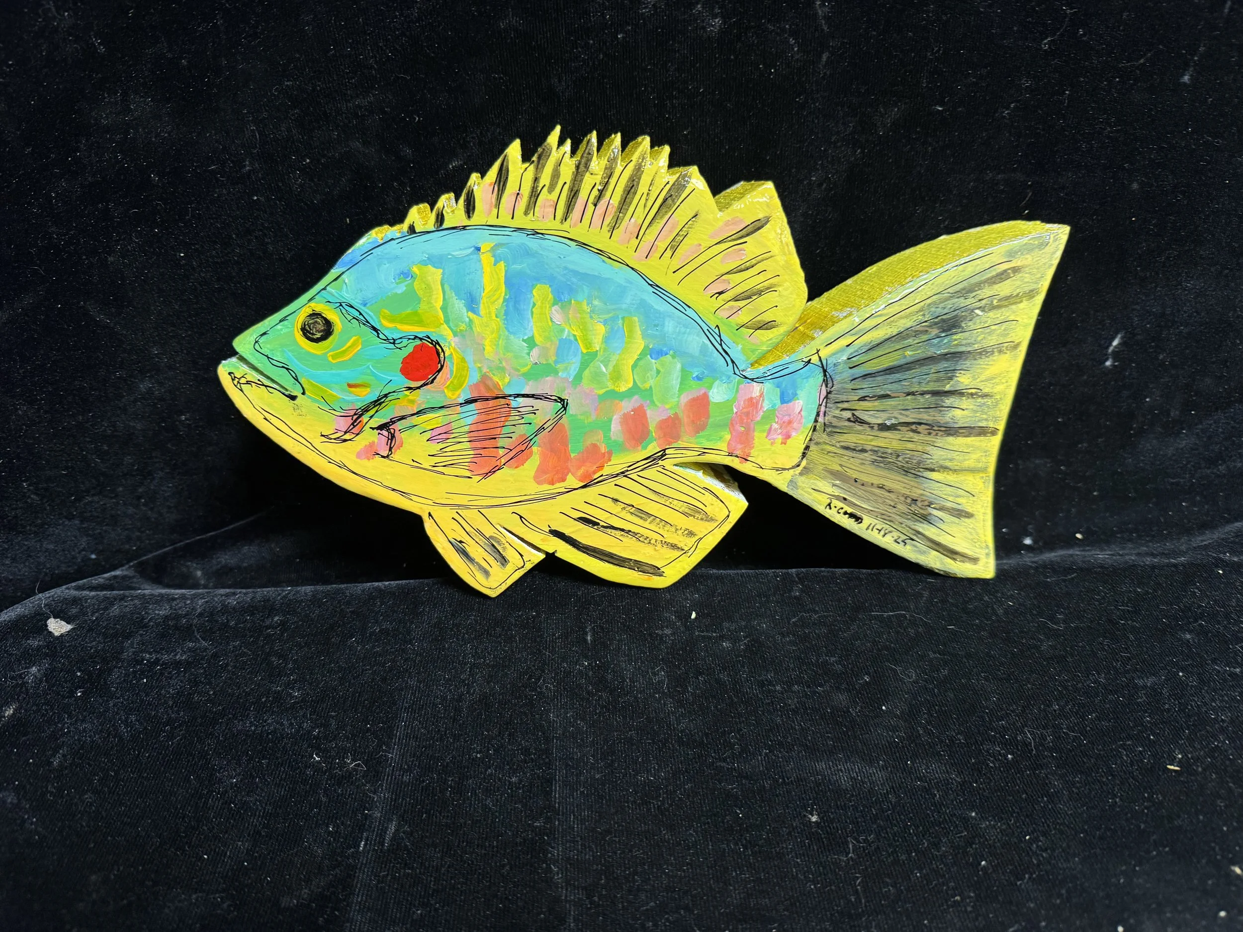 Pumpkinseed, 11-18-25, pine with gesso, acrylic, ink and polyurethane, 75.00